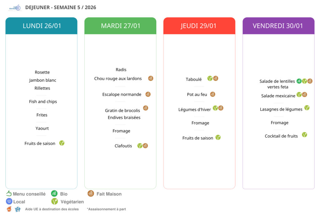 Menus du 26 au 30 janvier